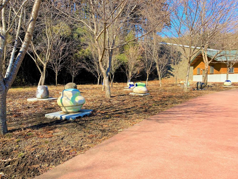 ユニークなモニュメントがお出迎えしてくれるのは御前山ダム公園。