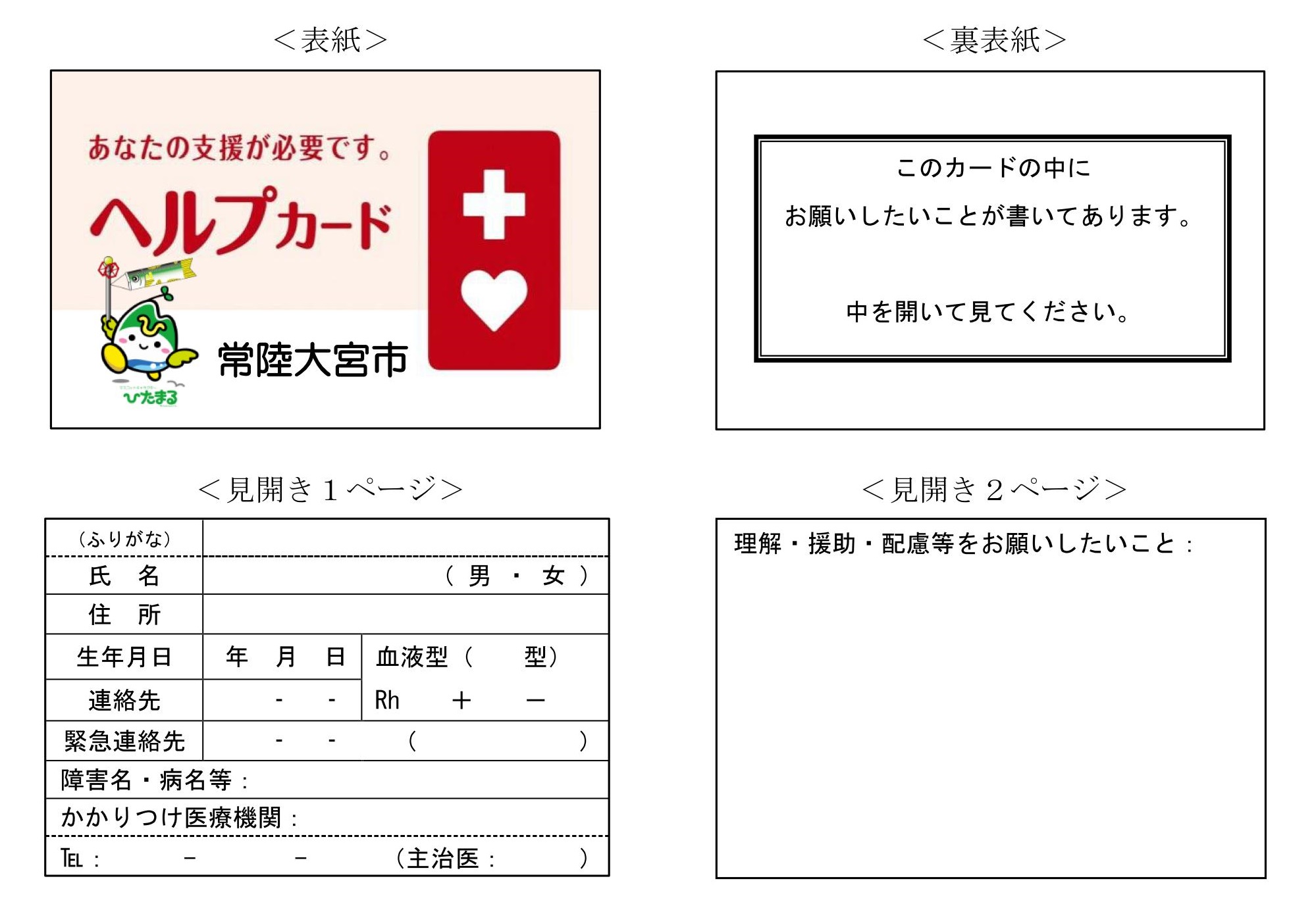 緊急連絡先や必要な支援内容などが記載された「ヘルプカード」は、障がいのある方などが災害時や日常生活の中で困ったときに、周囲に自己の障がいへの理解や支援を求めるためのものです。